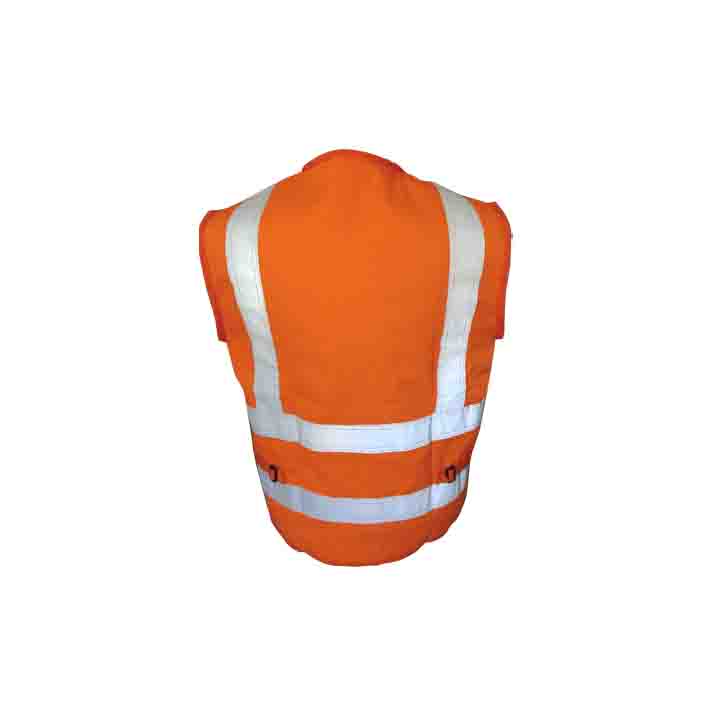 Chaleco confeccionado en tela Drill 100 % Polyester.